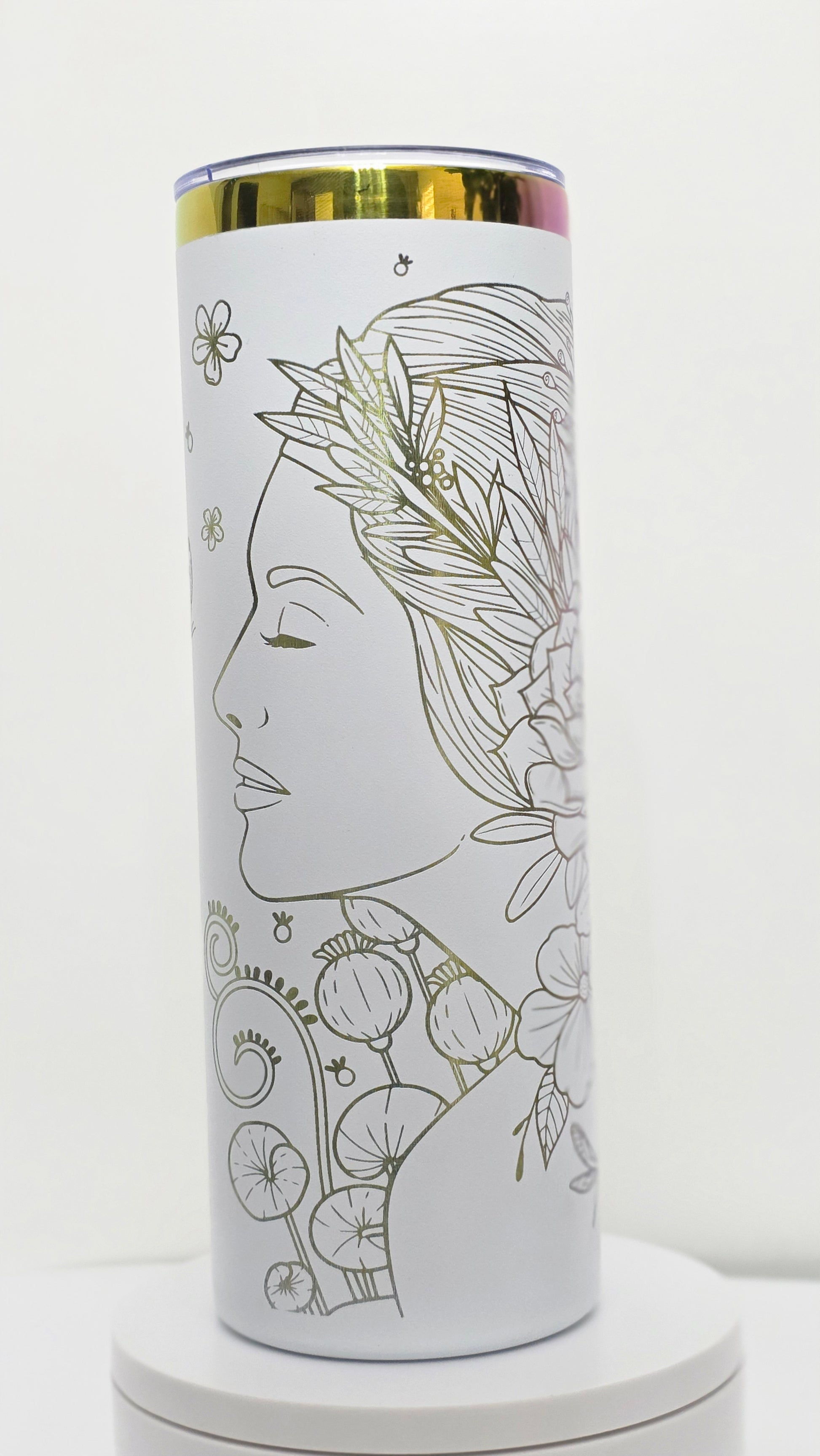 20oz. Floral Woman Tumbler | Boho Art Tumbler | Insulated Travel Cup | Gift for Her