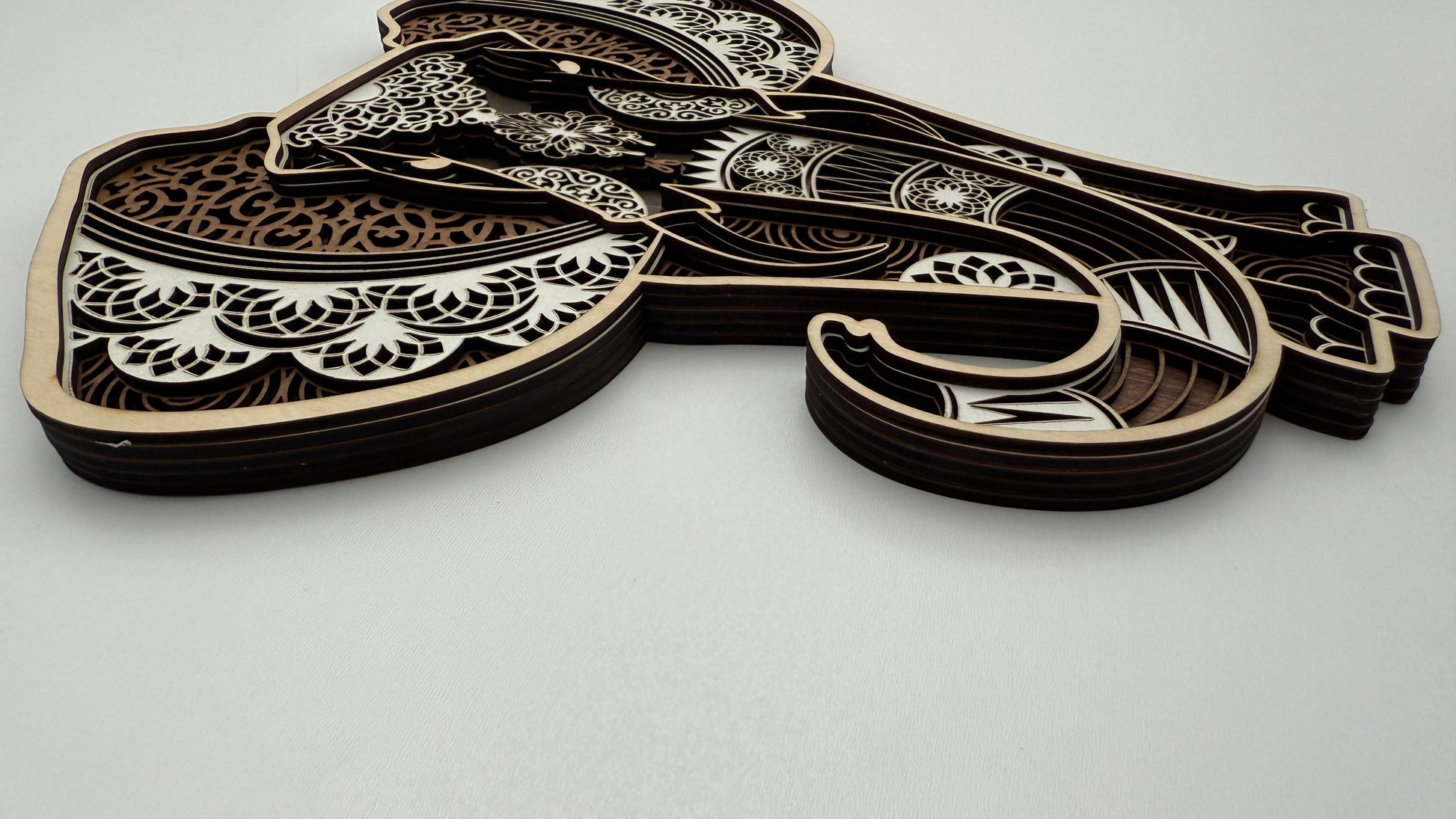 This handcrafted elephant art combines modern laser precision with the warmth of natural wood. 5 layers form delicate mandala patterns, creating a visually stunning balance of texture and depth. A perfect addition for those who love earthy, meaningful decor.